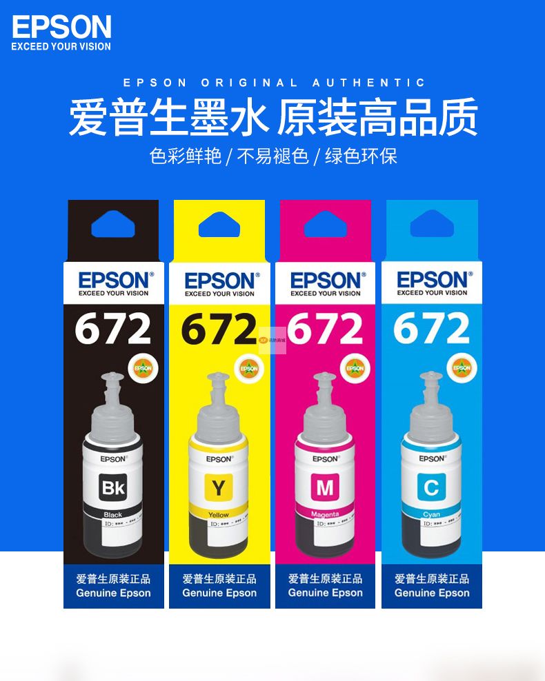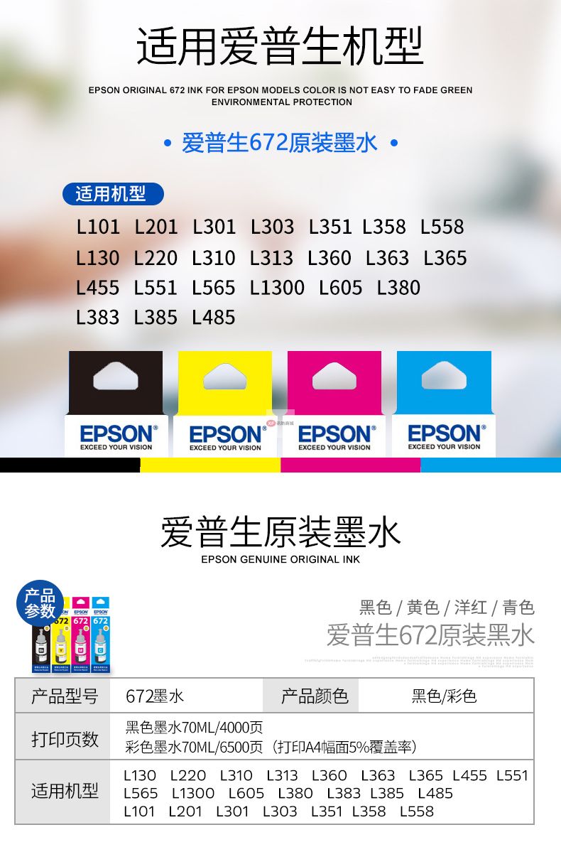 自營(yíng)愛(ài)普生T6721原裝墨水L380 L385 L485 L551 L1300 L360 L220打印機(jī) T672愛(ài)普生原裝黃色墨水