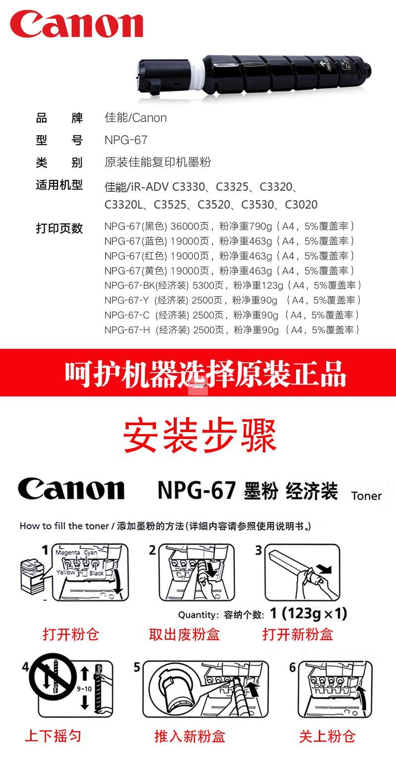 商品名稱:佳能(Canon)墨粉盒/NPG-67 黑色墨粉盒 (標(biāo)準(zhǔn)裝36000頁) (適用C3330/C3320/C3020/C3520)(NPG-67)
