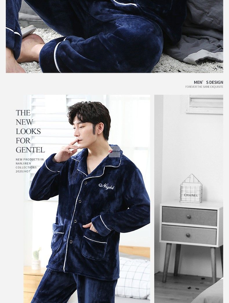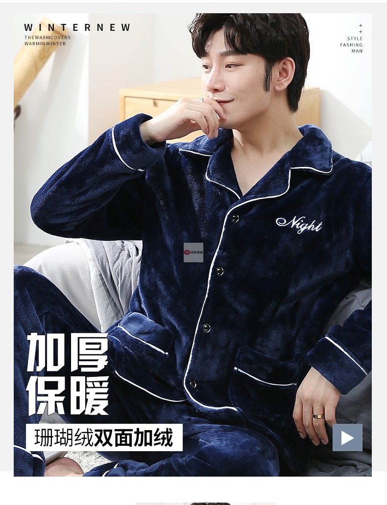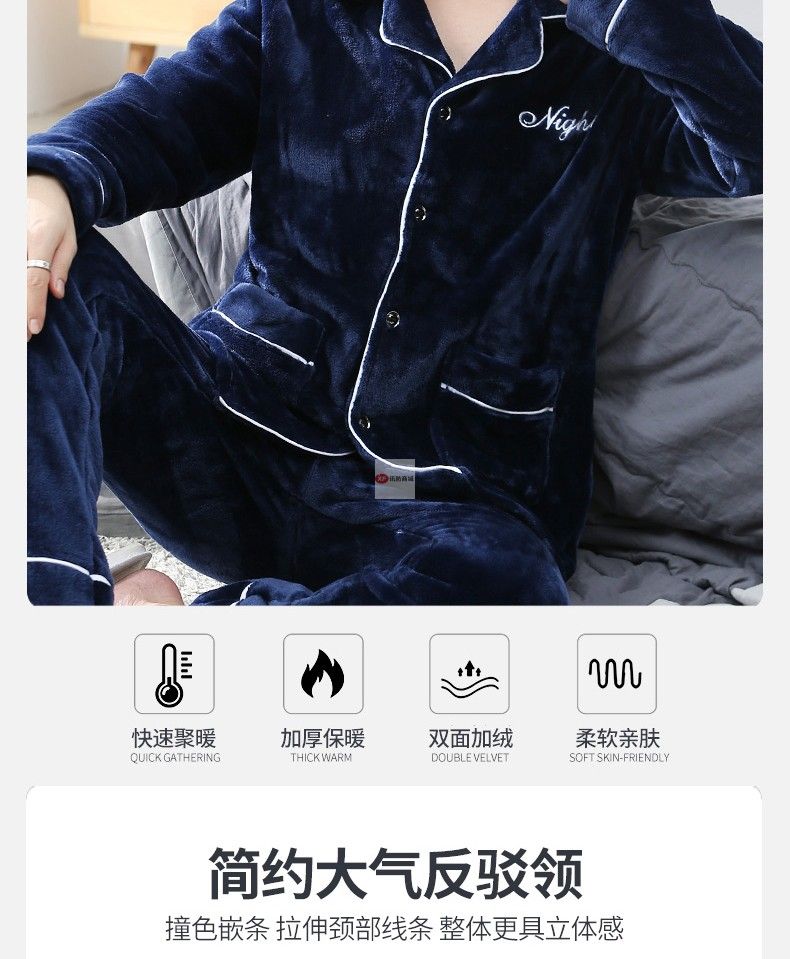 商品名稱(chēng):南極人睡衣男秋冬家居服套裝可外穿法蘭絨保暖加厚加絨珊瑚絨睡衣套裝 藏青 XXL