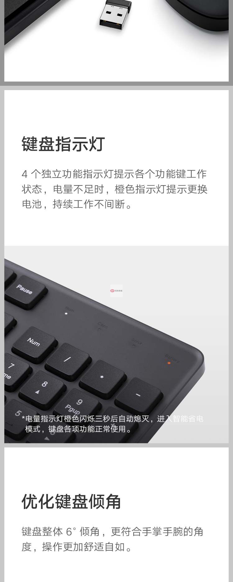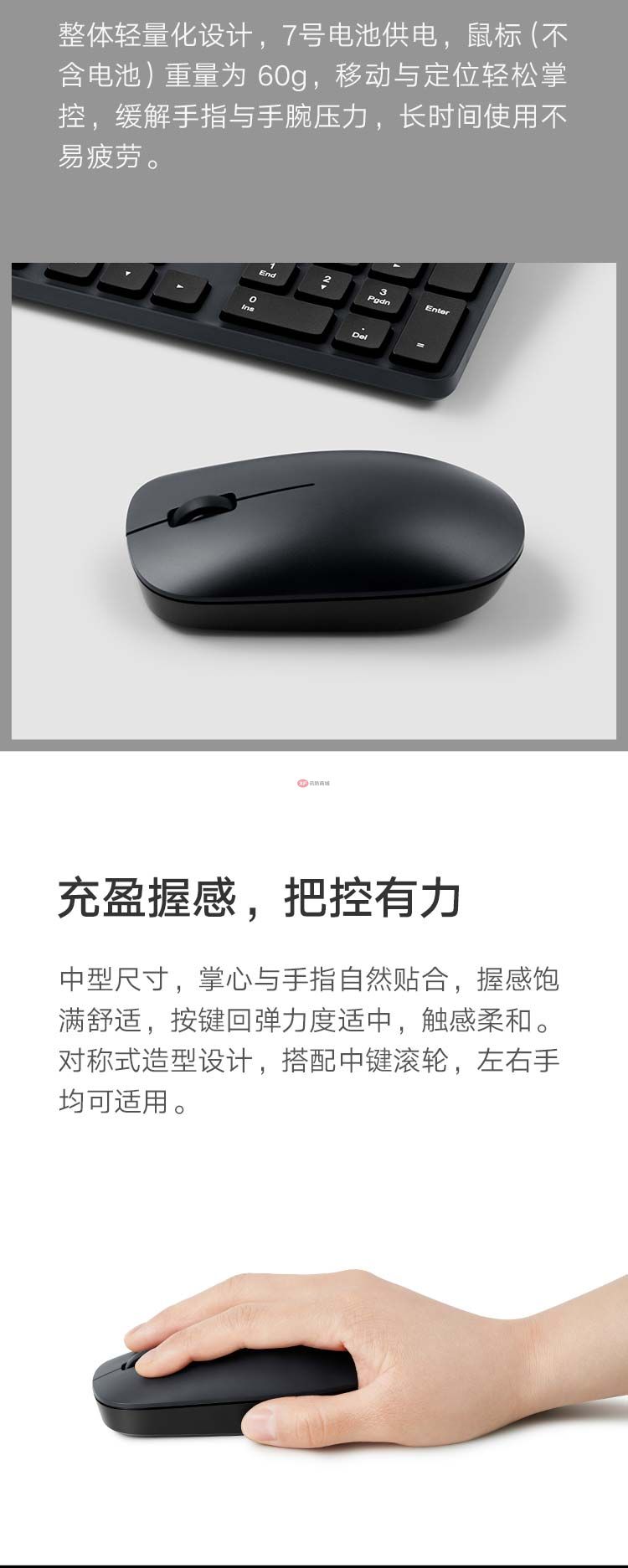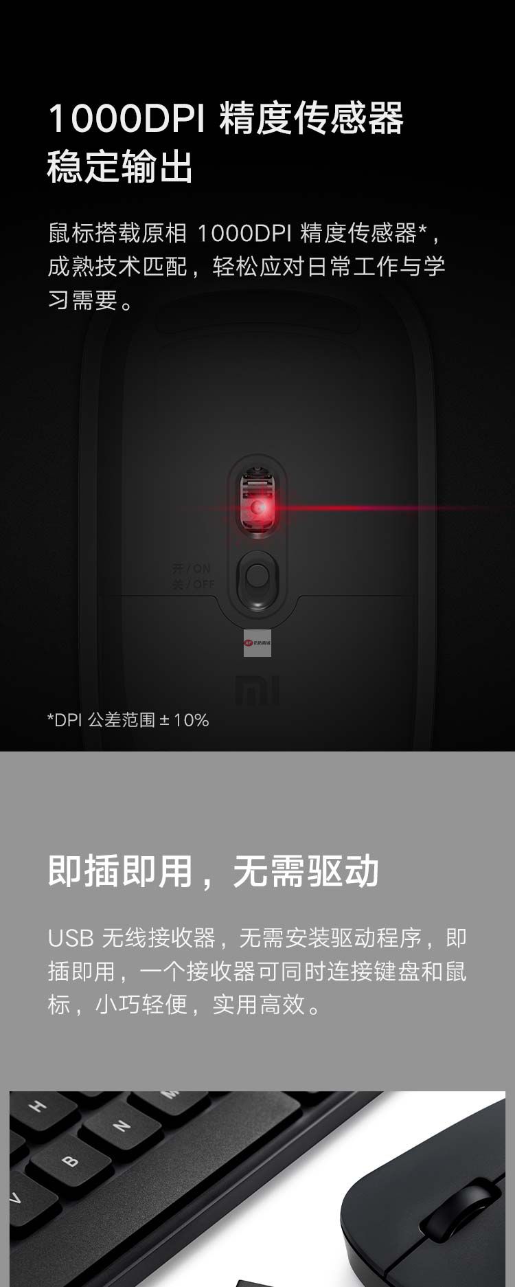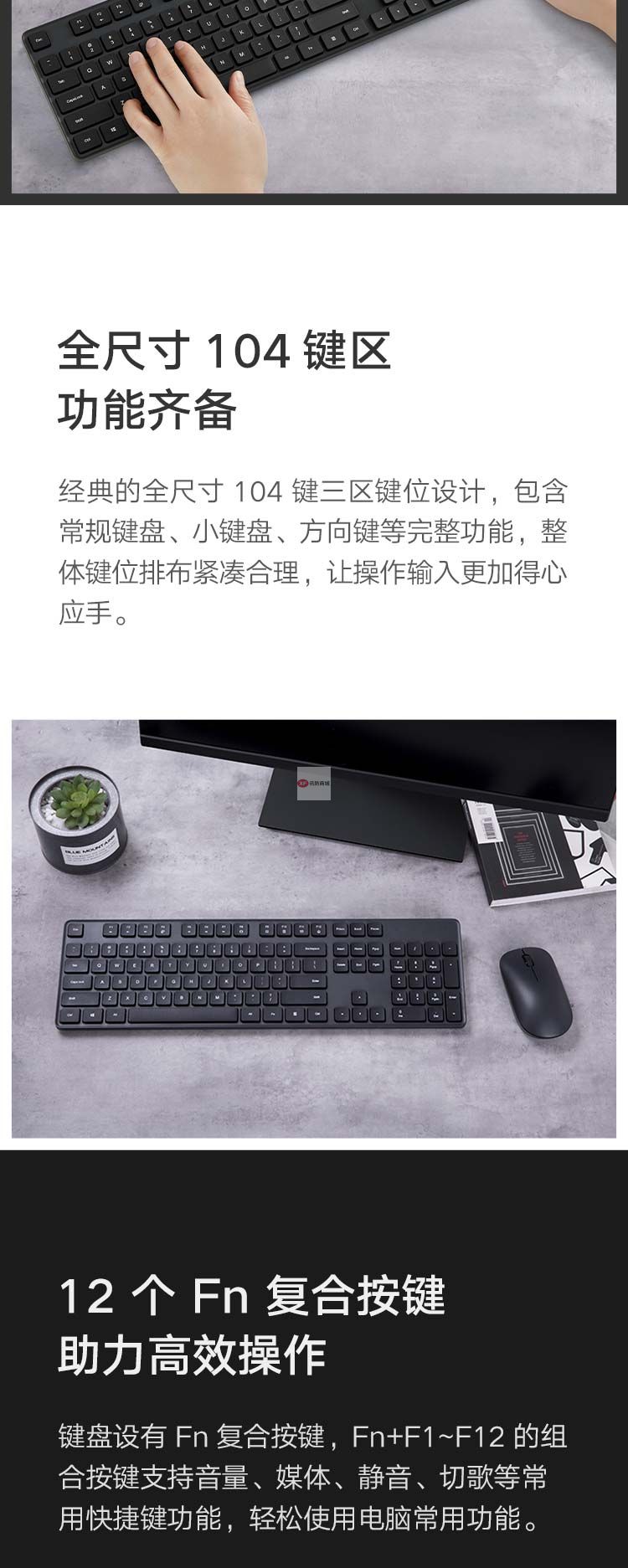 商品名稱:小米 無線鍵鼠套裝 簡潔輕薄 全尺寸104鍵鍵盤 舒適鼠標 2.4G無線傳輸 電腦辦公套裝