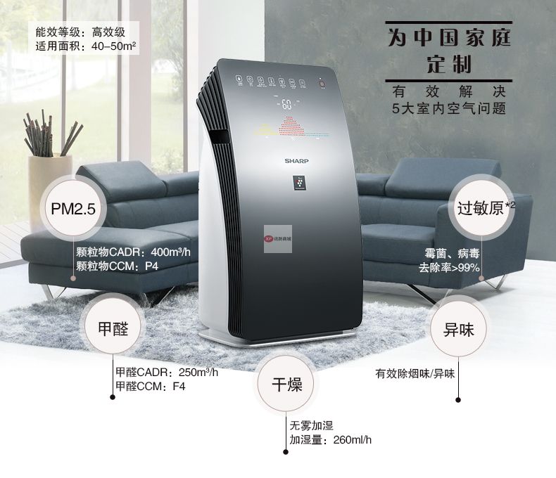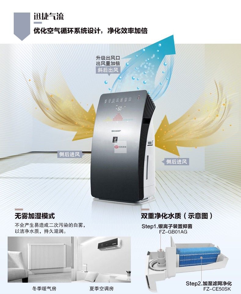 商品名稱:夏普KC-CG60-M 空氣凈化器 除甲醛PM2.5霧霾異味花粉加濕智能互聯(lián)辦公室除煙塵