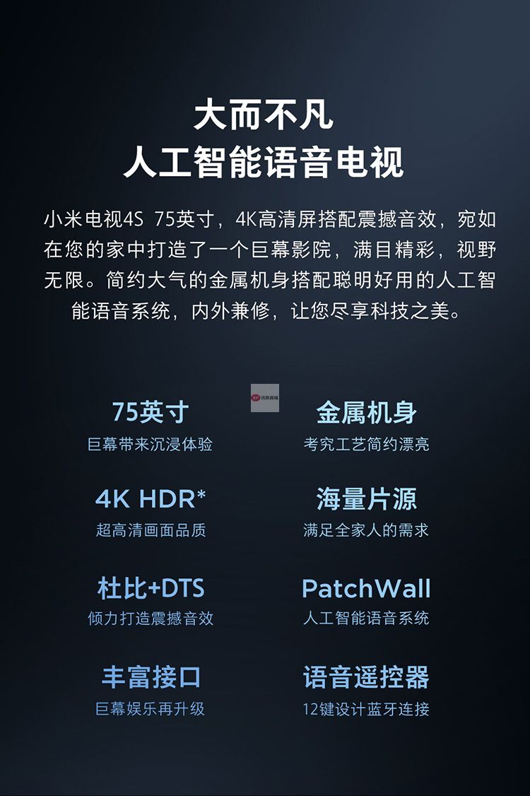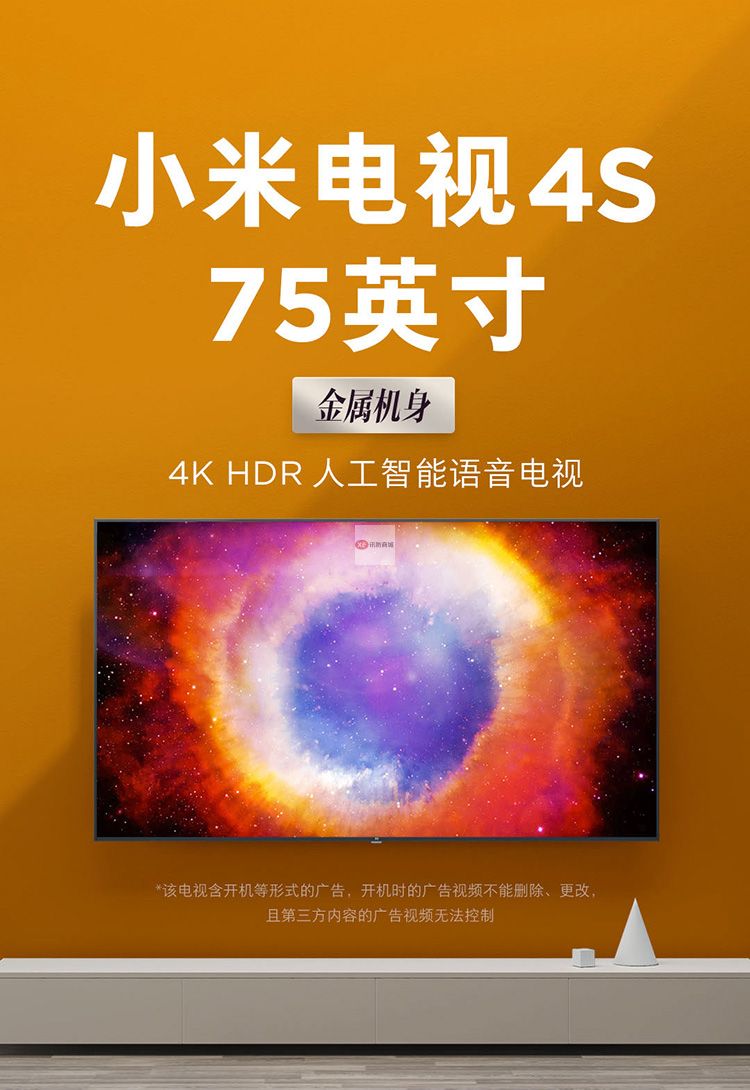商品名稱:小米電視4S 75英寸超大屏 4K超高清藍牙語音遙控 2GB+8GB L75M5-4S 人工智能語音網(wǎng)絡液晶平板教育電視 含掛架及普通安裝