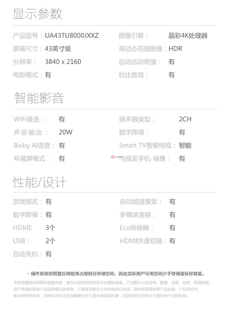 商品名稱:三星(SAMSUNG) UA43TU8000JXXZ 43英寸 TU8000 4K超高清 全面屏 HDR畫質(zhì)增強(qiáng) 教育資源智能液晶電視機(jī)