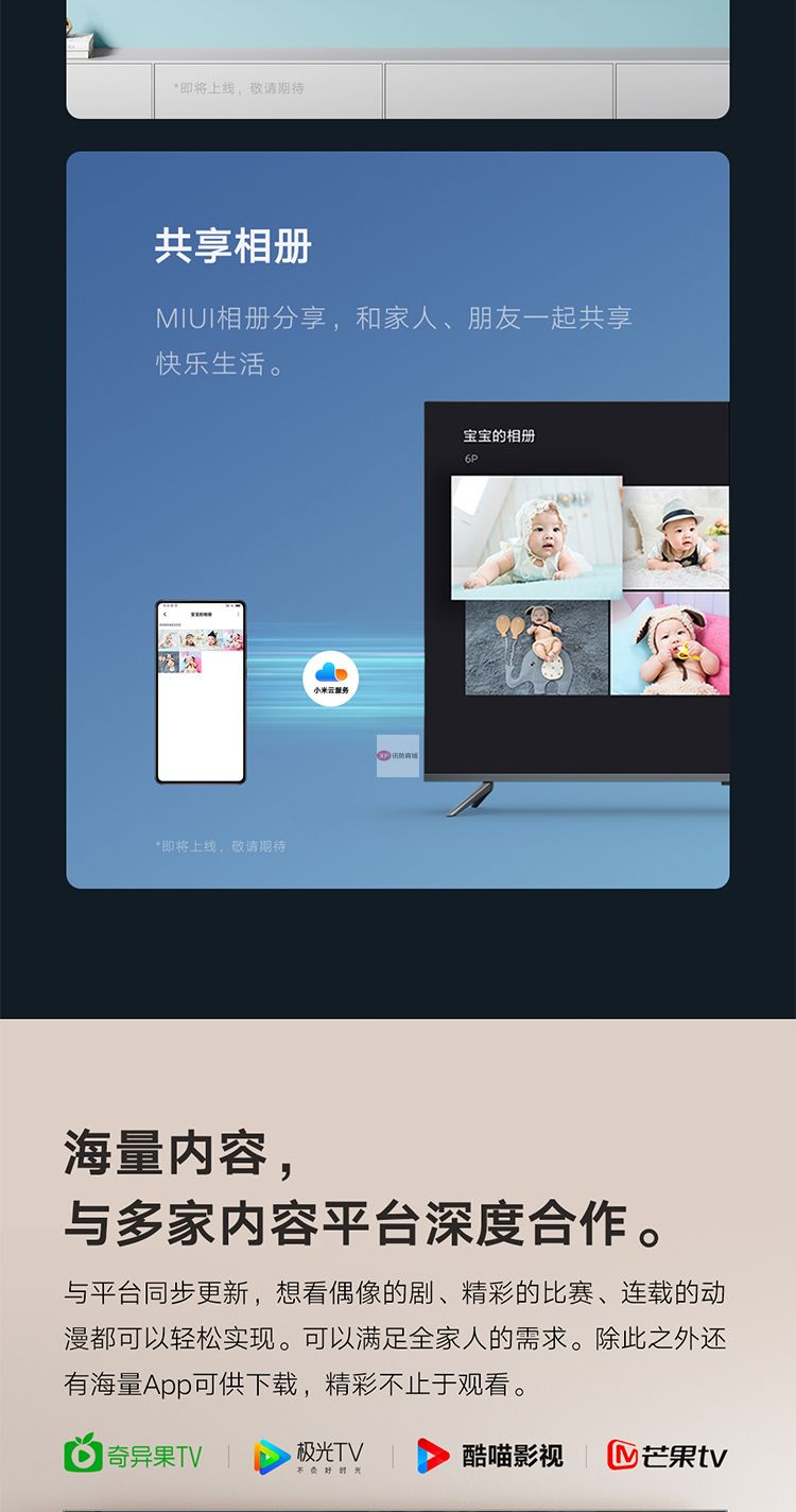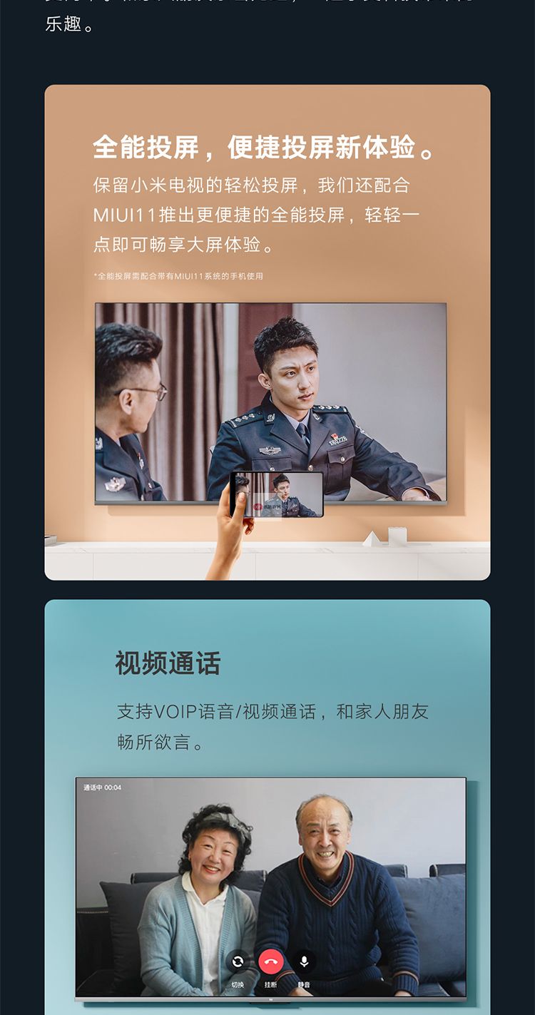 自營小米電視5 55英寸 L55M6-5 4K超高清 5.9mm超薄 3+32GB 內(nèi)置小愛 人工智能網(wǎng)絡(luò)平板教育電視
