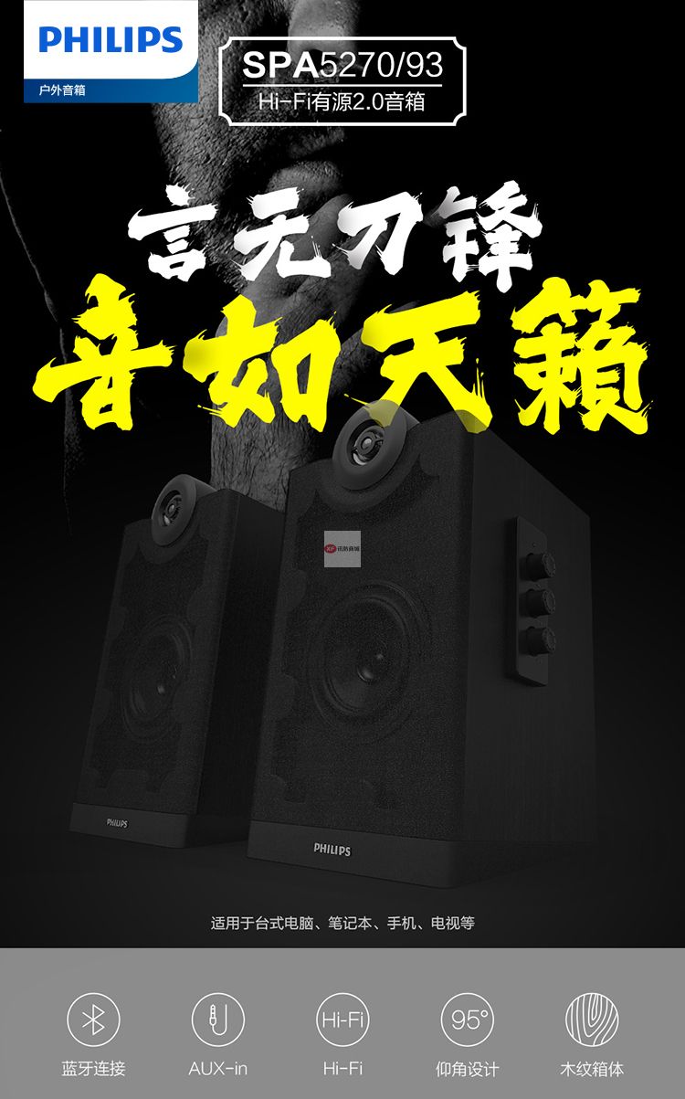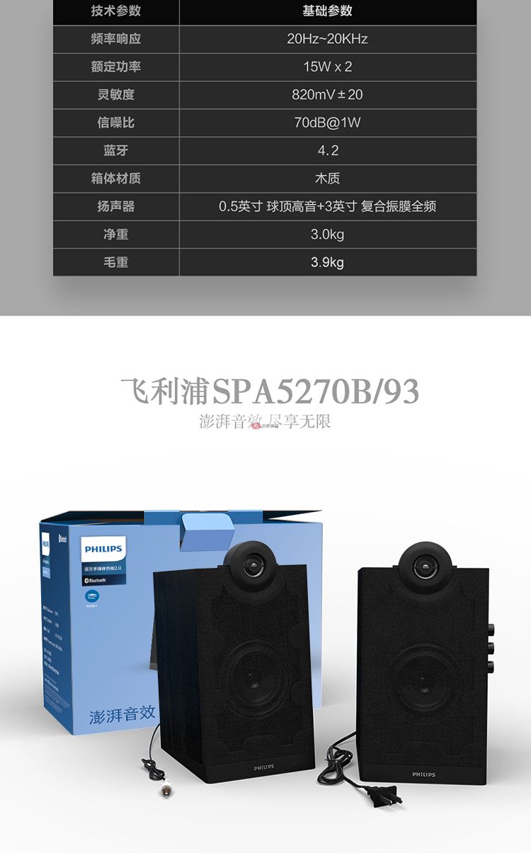 商品名稱:飛利浦(PHILIPS)SPA5270B 音箱電腦藍(lán)牙無(wú)線HIFI2.0有源多媒體音響