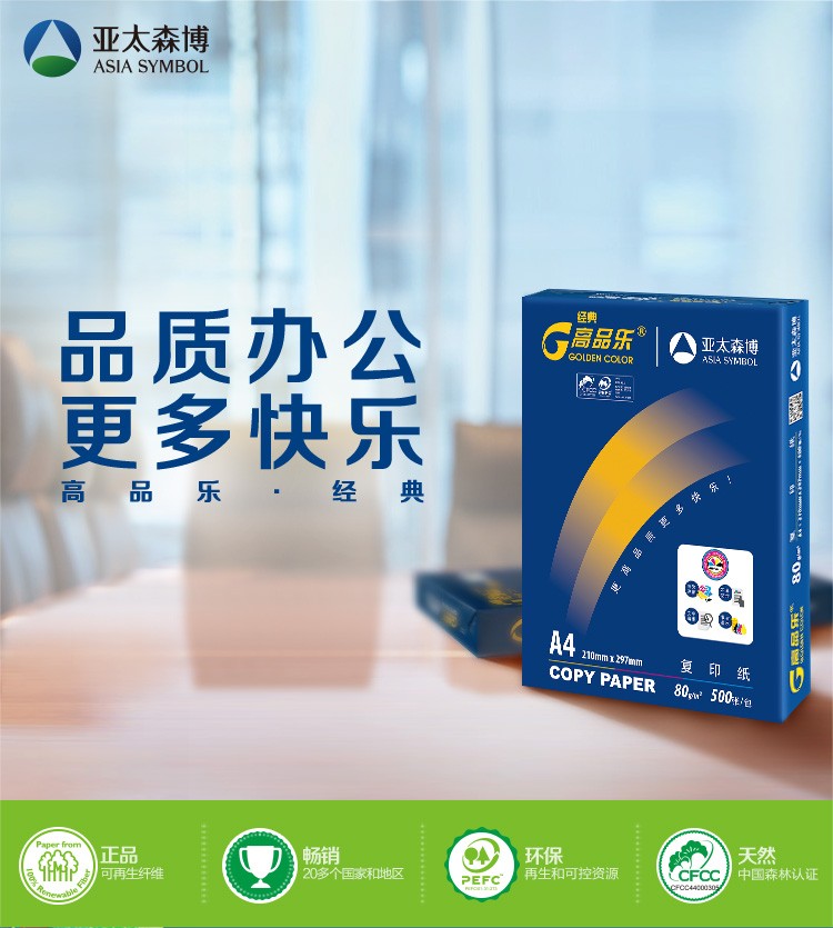 商品名稱:亞太森博(Asia Symbol) 經(jīng)典高品樂 80g A4高級(jí)復(fù)印紙 5包/箱