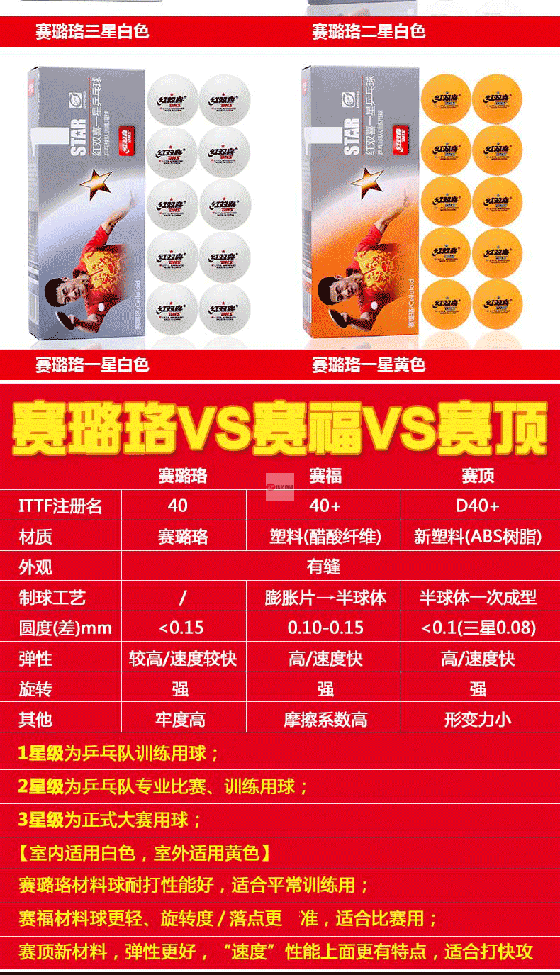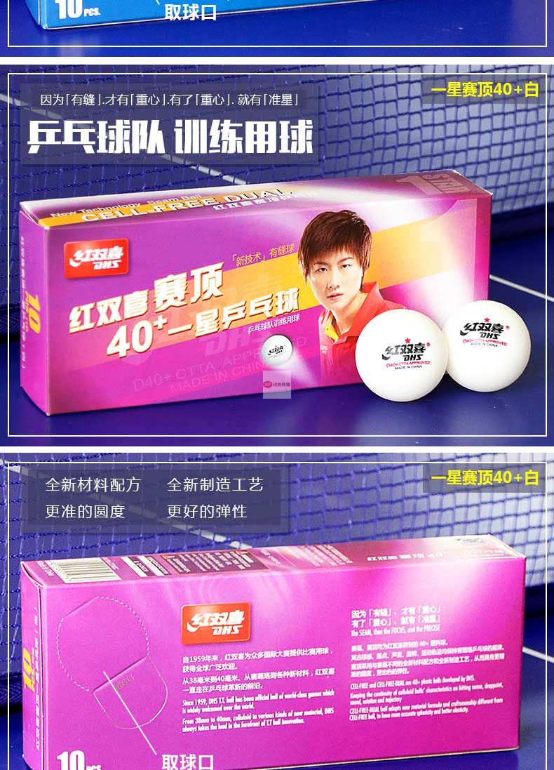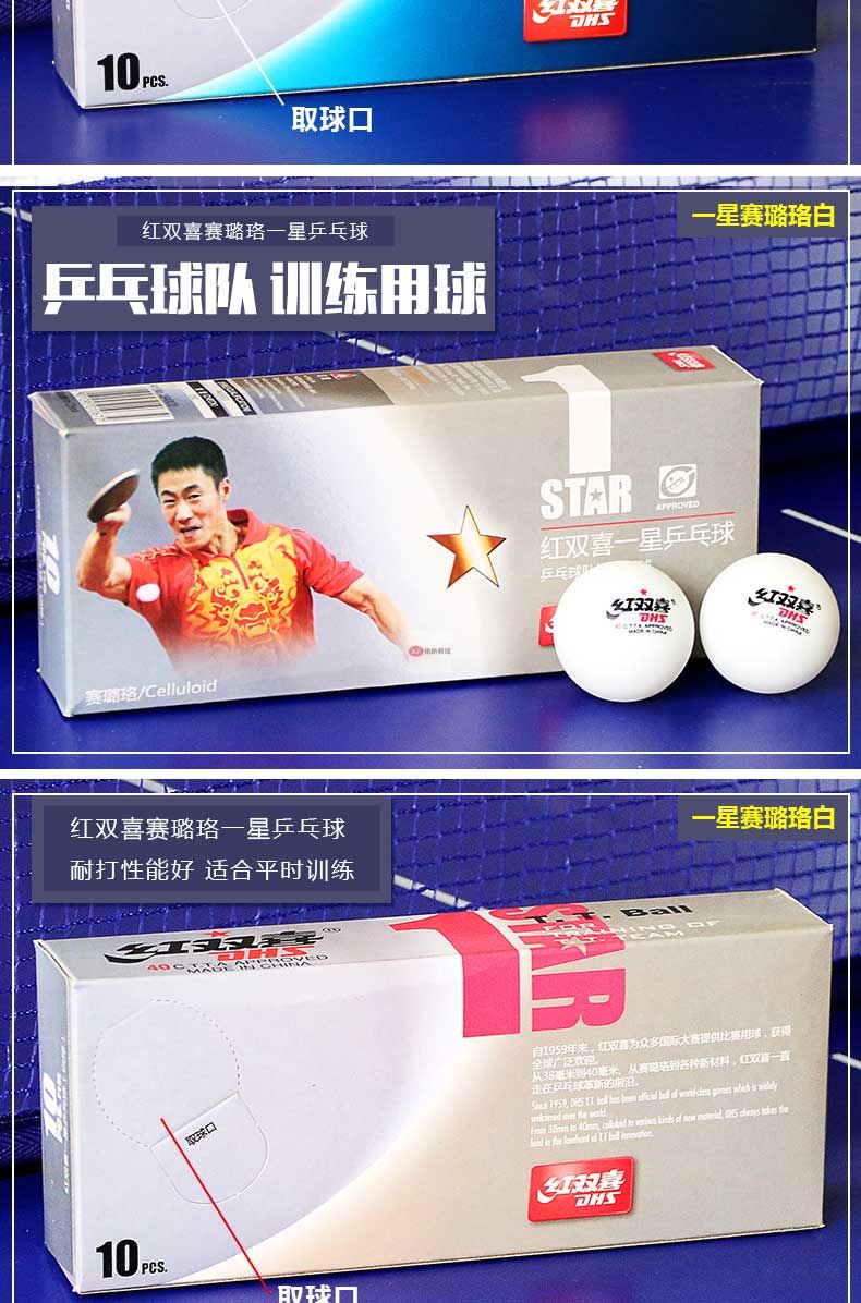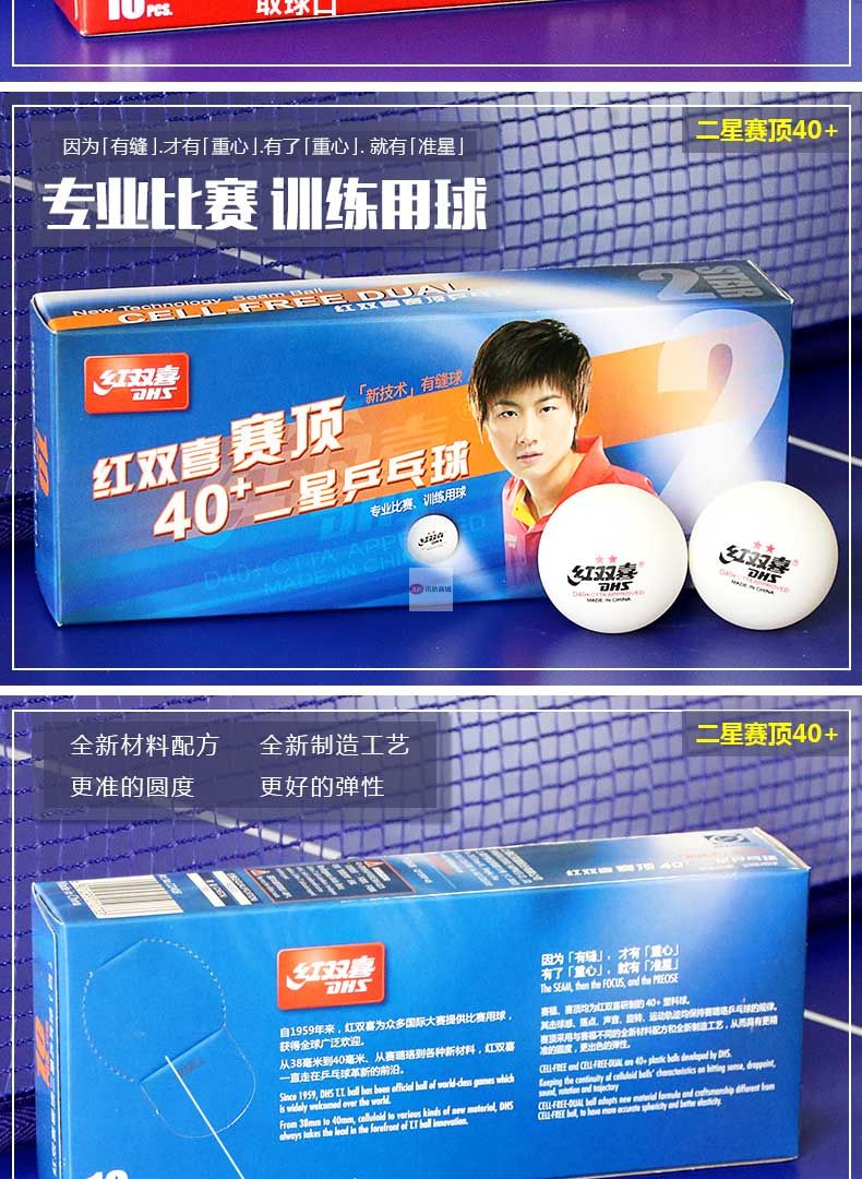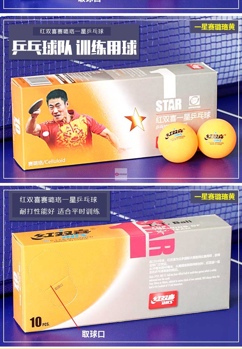 商品名稱:紅雙喜乒乓球三星級(jí)一星二星比賽訓(xùn)練用球40+白黃色 ppq正品40mm 一星40+賽頂10只盒裝(白色)
