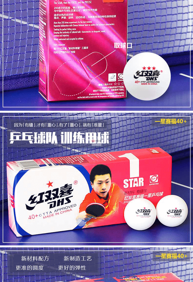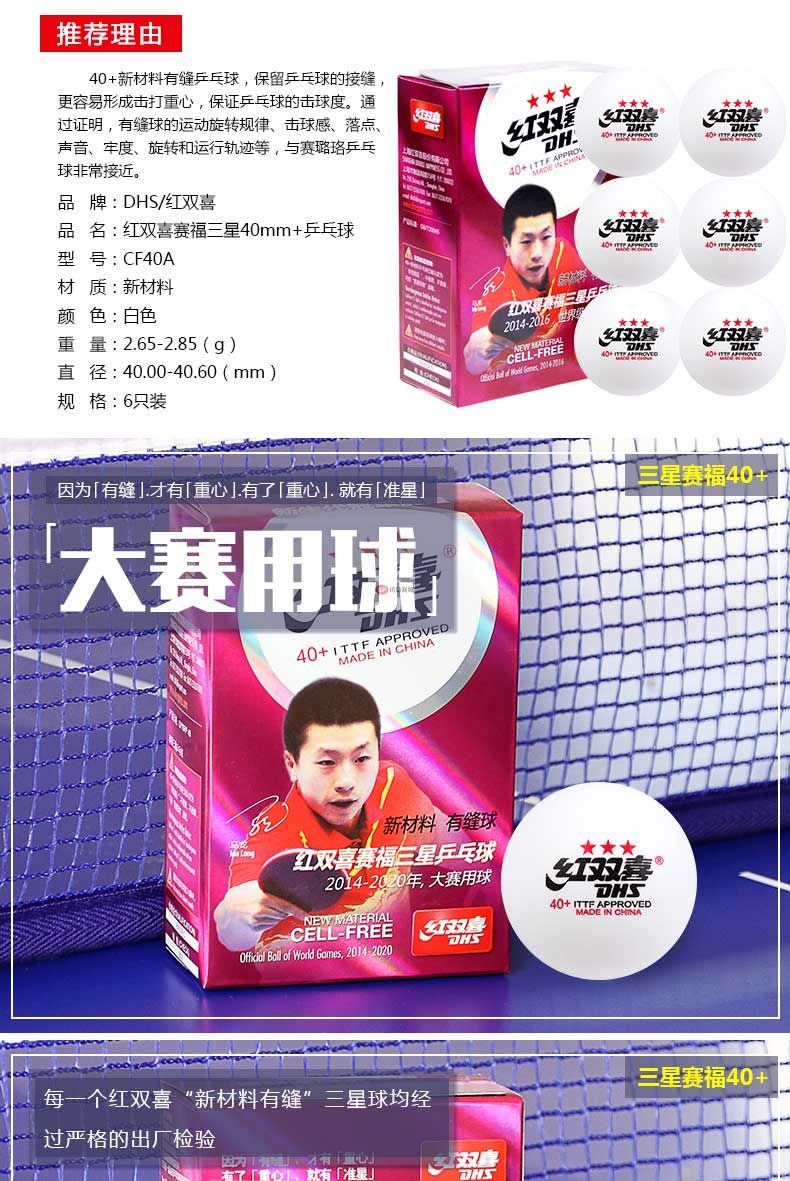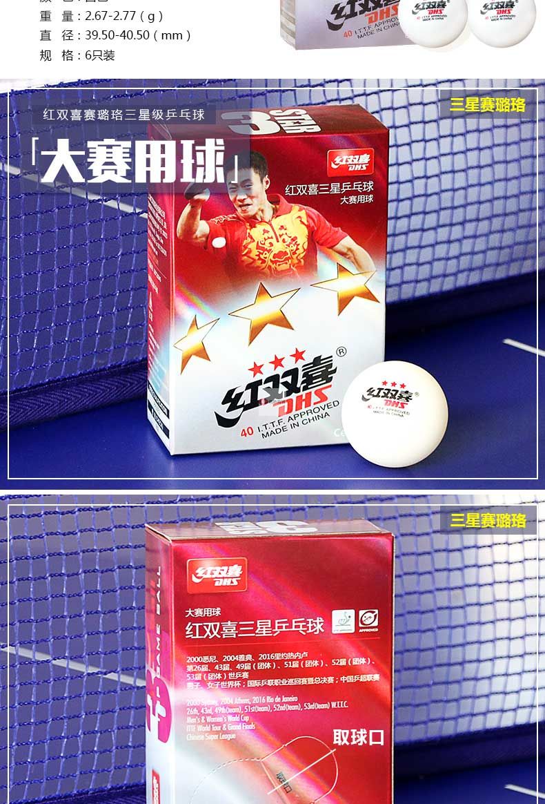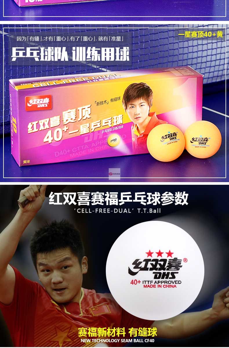 商品名稱:紅雙喜乒乓球三星級(jí)一星二星比賽訓(xùn)練用球40+白黃色 ppq正品40mm 一星40+賽頂10只盒裝(白色)