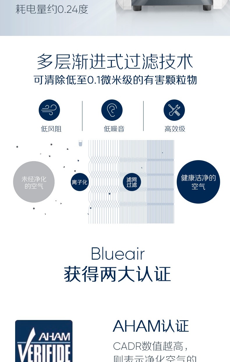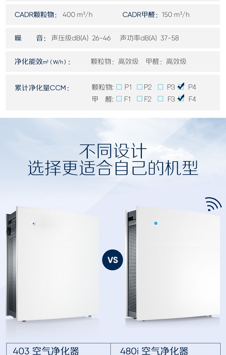 商品名稱:布魯雅爾 Blueair 403 空氣凈化器 家用 客廳臥室辦公室內(nèi)靜音 除甲醛 除霧霾 除二手煙凈化器(線下同款)