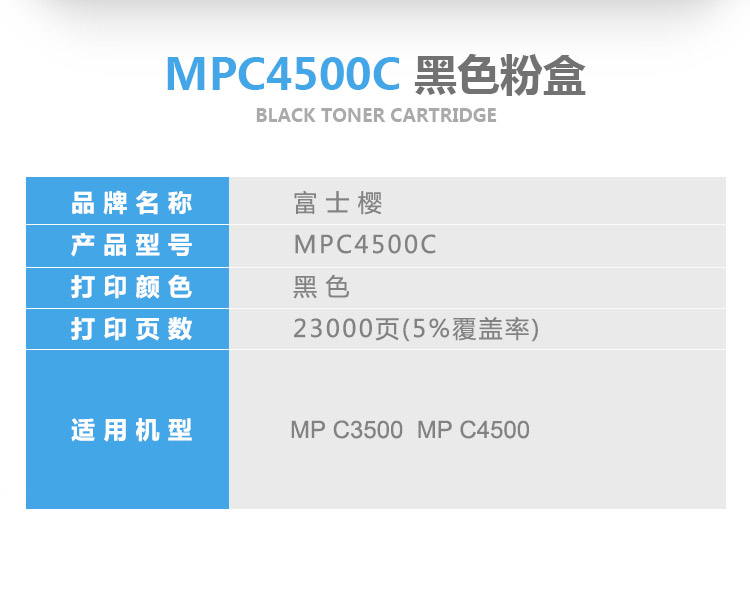 商品名稱:富士櫻(FUSICA)MPC4500C黑色粉盒 適用理光MP C3500 C4500