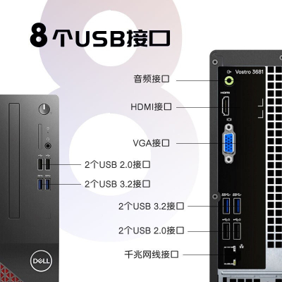 自營(yíng)戴爾(DELL) 成就3681 辦公商用家用臺(tái)式電腦 全套整機(jī)迷你小主機(jī)3710同款外觀 主機(jī)+21.5英寸顯示器 英特爾G6405 8G 256G固態(tài)