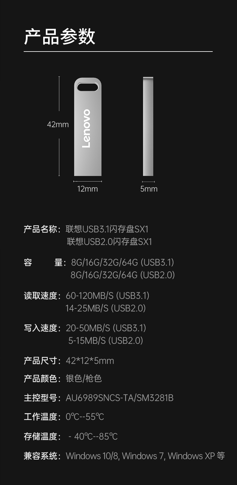 商品名稱:聯(lián)想(Lenovo)64GB USB3.1 U盤 SX1速芯系列銀色 金屬耐用 商務辦公必備