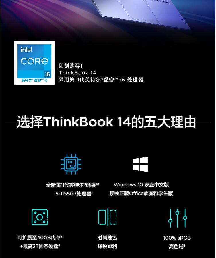 自營ThinkBook14 21A3000SCD I5-1155G7 16G 512G 集顯 無光驅(qū) 高色域 W11系統(tǒng)