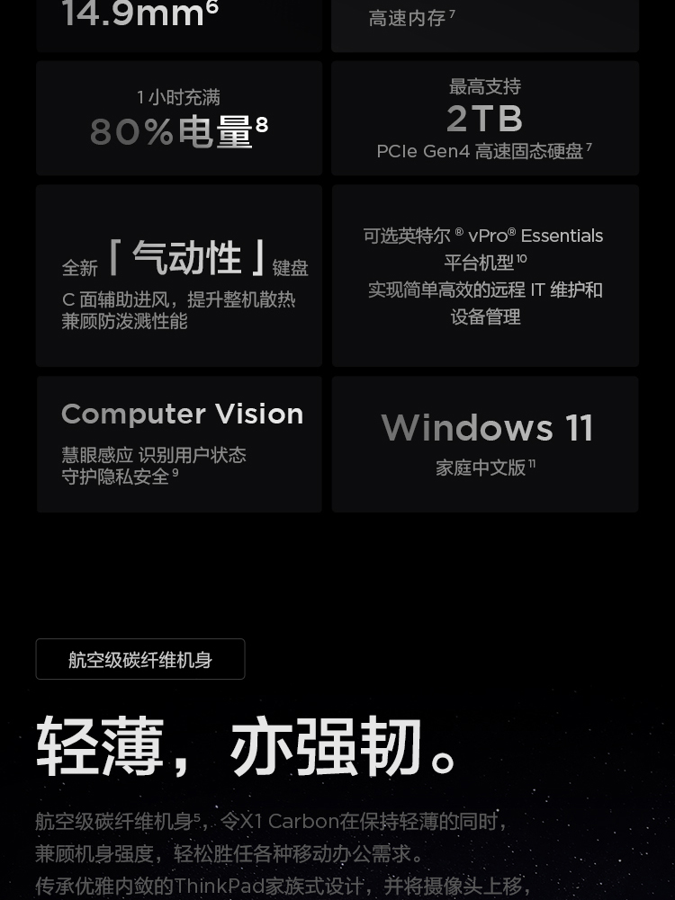 自營(yíng)ThinkPad X1 Carbon 2022款12代英特爾酷睿處理器14英寸高端商務(wù)輕薄筆記本電腦 12代i5 16G 512G 02CD 2.2K屏