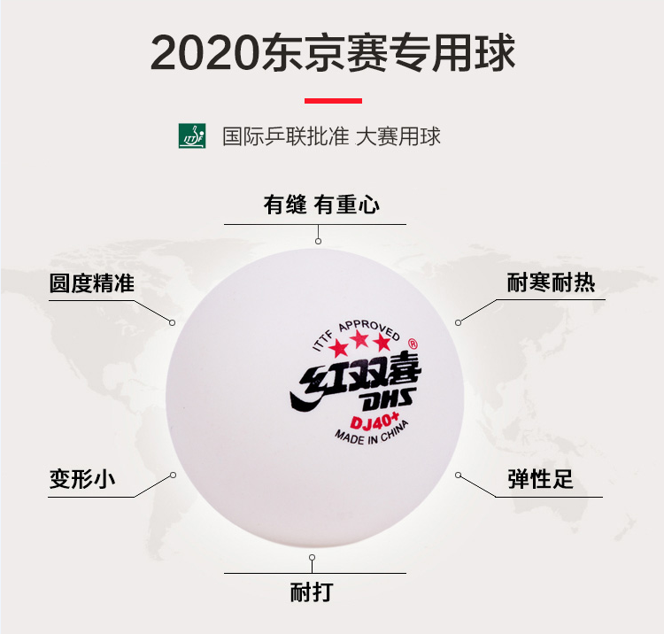 商品名稱:紅雙喜乒乓球三星 DJ40+東京奧運(yùn)會(huì)比賽用球 白色6個(gè)/盒
