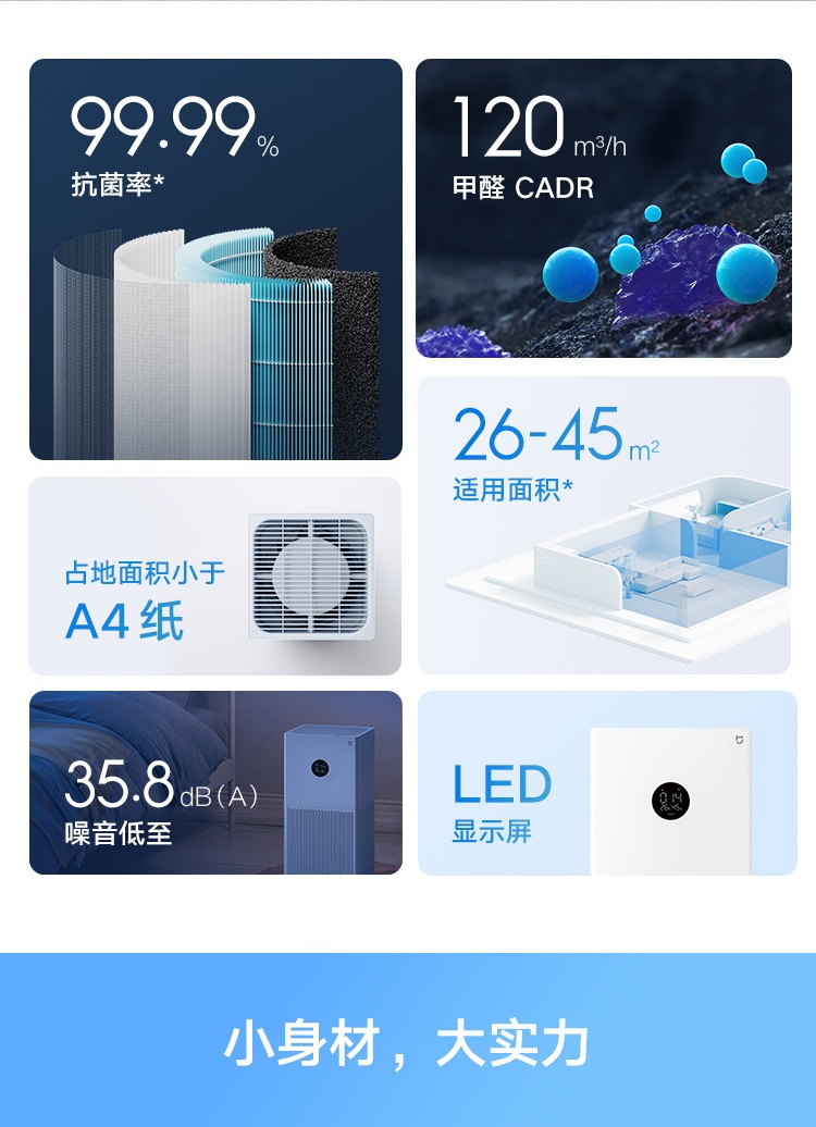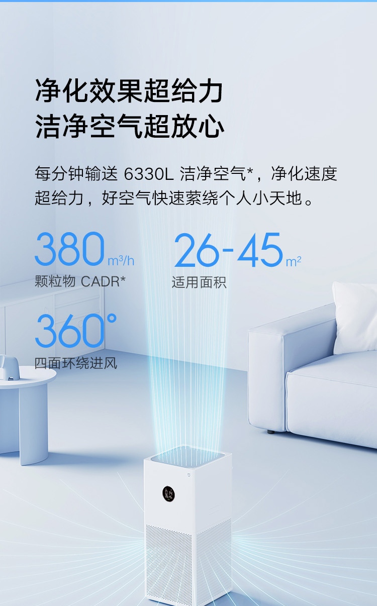 自營(yíng)小米米家空氣凈化器4lite 除甲醛除菌除異味 家用 除霧霾PM2.5 輕音設(shè)計(jì) 米家APP互聯(lián) AC-M17-SC