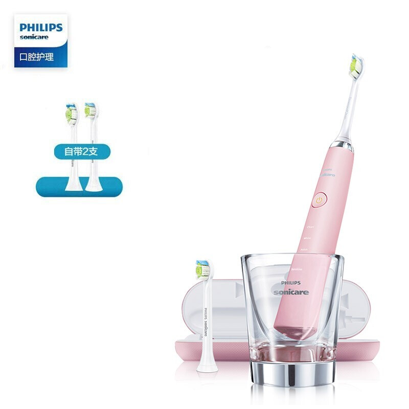 自營飛利浦 HX9362 電動(dòng)牙刷 成人 鉆石系列粉鉆 含刷頭*2+充電旅行盒+充電玻璃杯 粉色