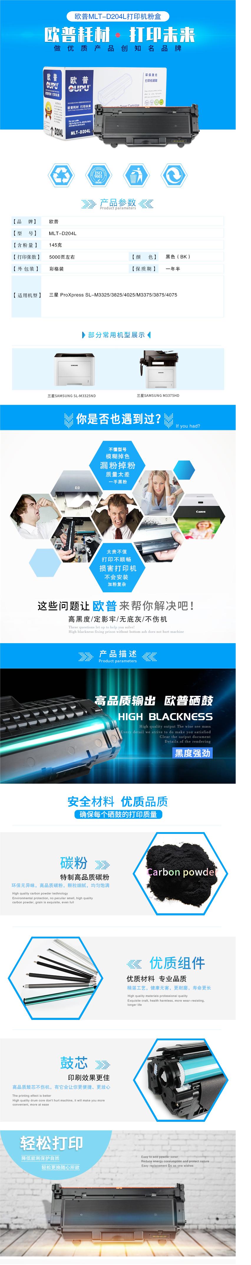商品名稱:歐普(oupu)云系列打印機(jī)硒鼓MLT-D204L倉(cāng)適用三星ProXpress SL-M3325等