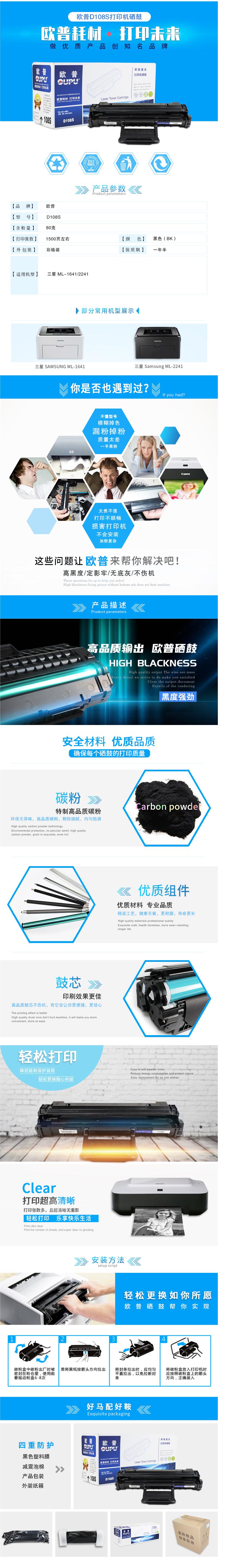 商品名稱:歐普(oupu)D108S硒鼓適用三星ML-1641/2241