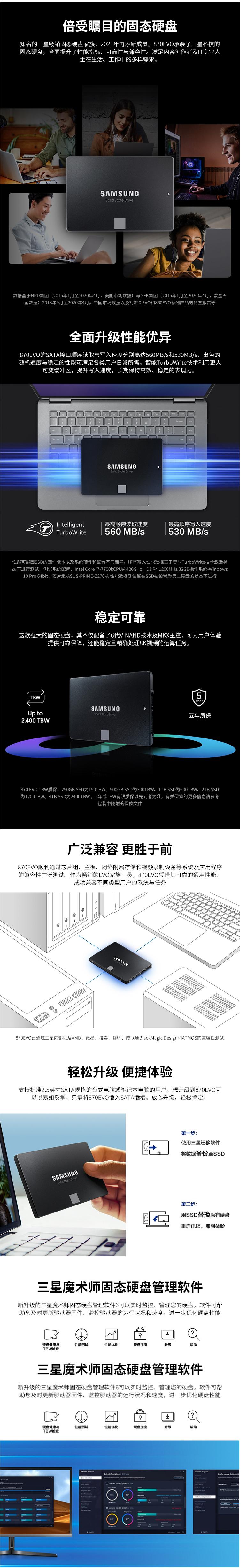 自營三星(SAMSUNG) 870 EVO(MZ-77E4T0B) 固態(tài)硬盤 4TB SATA3.0接口 讀取速度560MB/s