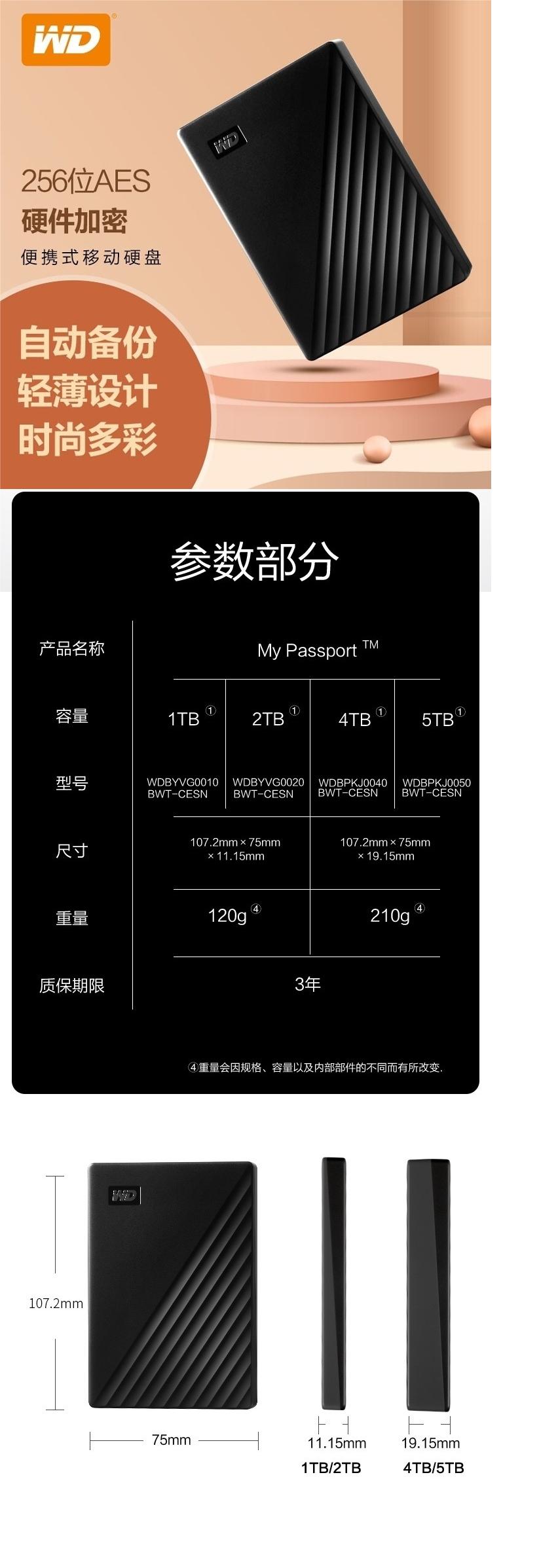 自營(yíng)西部數(shù)據(jù)(WD) WDBYVG0010BBK 1TB USB3.0 移動(dòng)硬盤(pán) My Passport隨行版 2.5英寸