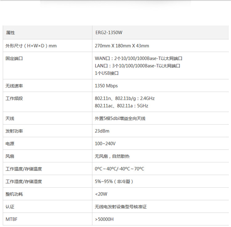 商品名稱:華三(H3C)ERG2-1350W 1350M雙頻五口千兆路由器 穿墻王