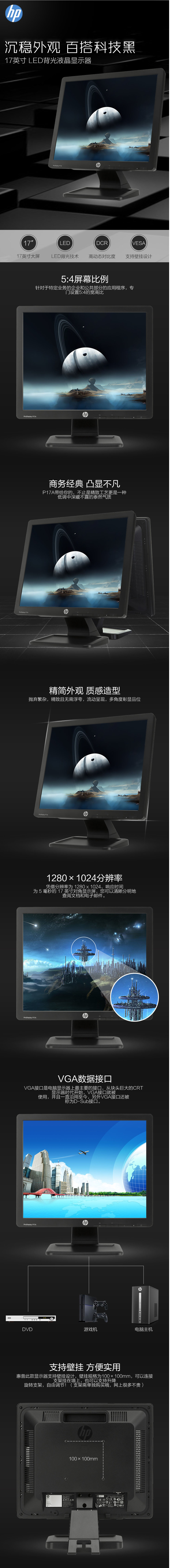商品名稱:惠普(HP)液晶顯示器(P17A) F4M97AA(17寸方屏LED背光)