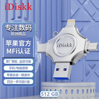 iDiskk 512GB Lightning USB3.0 type-c MicroUSB 蘋果安卓手機(jī)U盤四合一 銀色 兼容蘋果安卓手機(jī)電腦