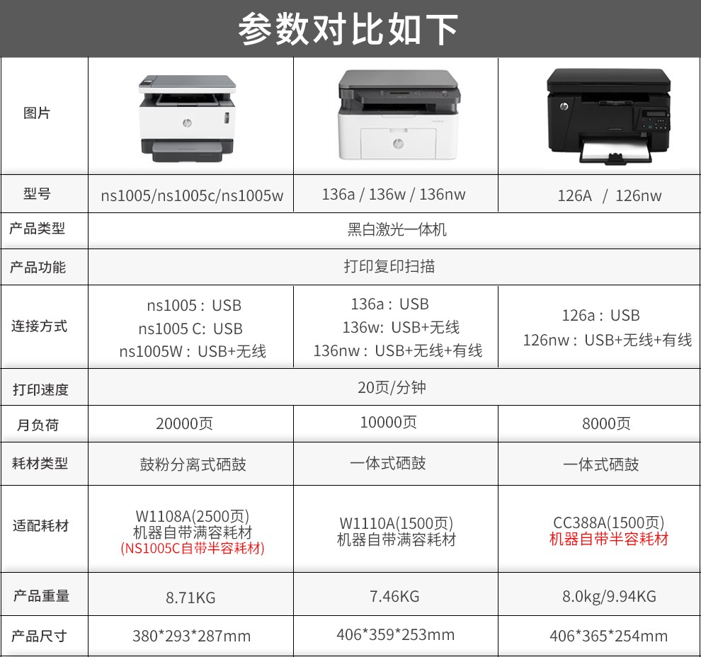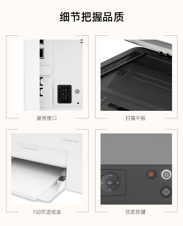 商品名稱:惠普hp 打印機 1005 1136 126a 136nw 30w A4黑白激光 復(fù)印 掃描 一體機 136w(升級款無線連接)