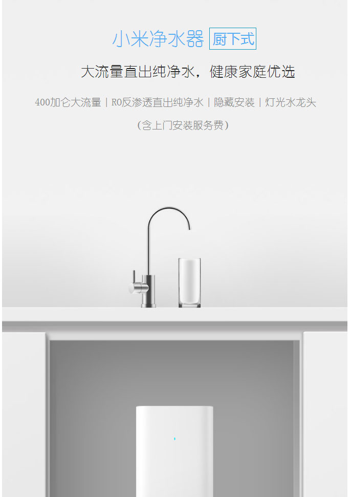• 商品名稱(chēng):小米(MI)凈水器廚下版 家用凈水器 RO反滲透大流量直飲低廢水 智能提醒自助更換濾芯更便捷