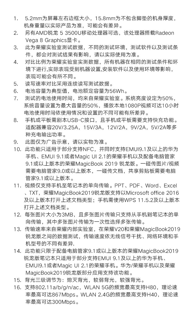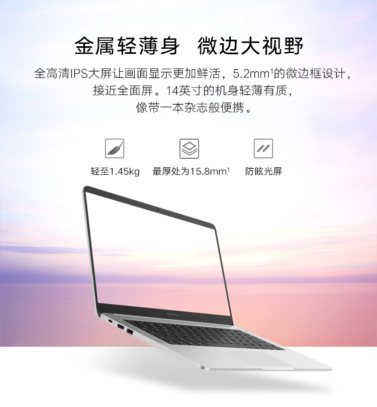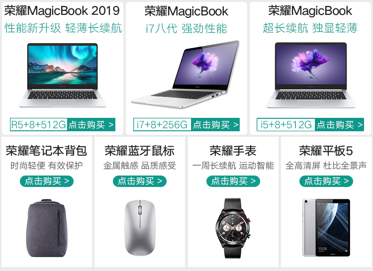 自營榮耀MagicBook 2019 14英寸輕薄窄邊框筆記本電腦(AMD銳龍5 3500U 8G 512G FHD IPS 指紋解鎖)冰河銀