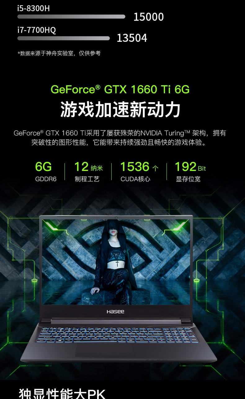 商品名稱(chēng):神舟(HASEE)戰(zhàn)神Z7-CT7NA 英特爾酷睿i7-9750H GTX1660Ti 6G獨(dú)顯15.6英寸窄邊框游戲筆記本電腦(8G 512G SSD)