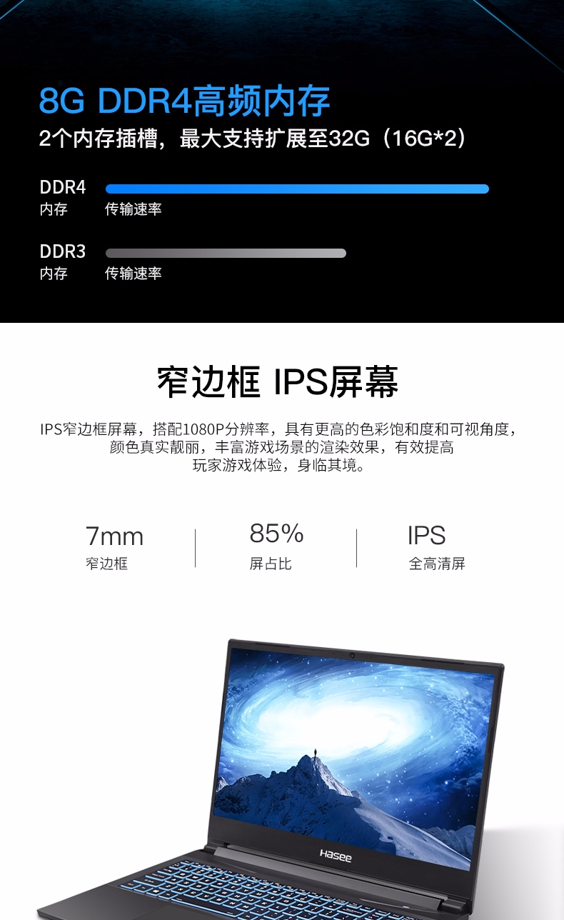 自營(yíng)神舟(HASEE)戰(zhàn)神Z7-CT7NA 英特爾酷睿i7-9750H GTX1660Ti 6G獨(dú)顯15.6英寸窄邊框游戲筆記本電腦(8G 512G SSD)