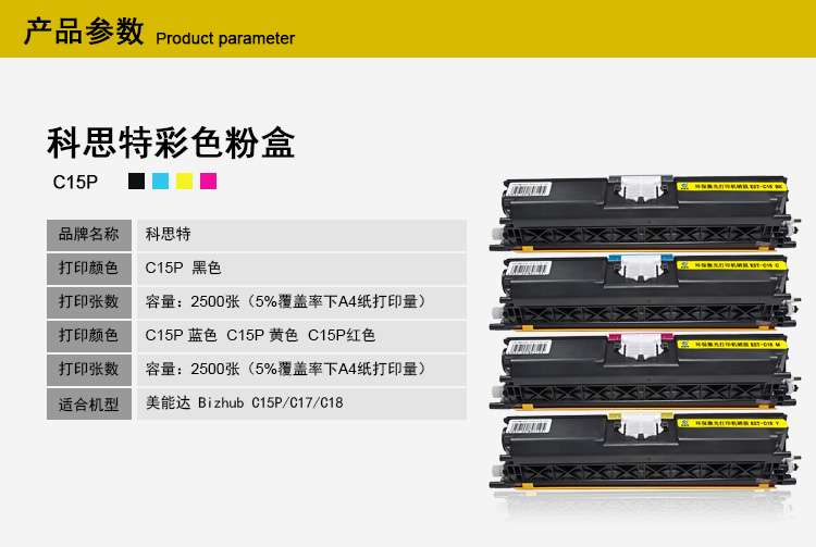 商品名稱:科思特 C15粉盒 適用柯尼卡美能達打印機BizhubC15 C17 C18 黃色 專業(yè)版