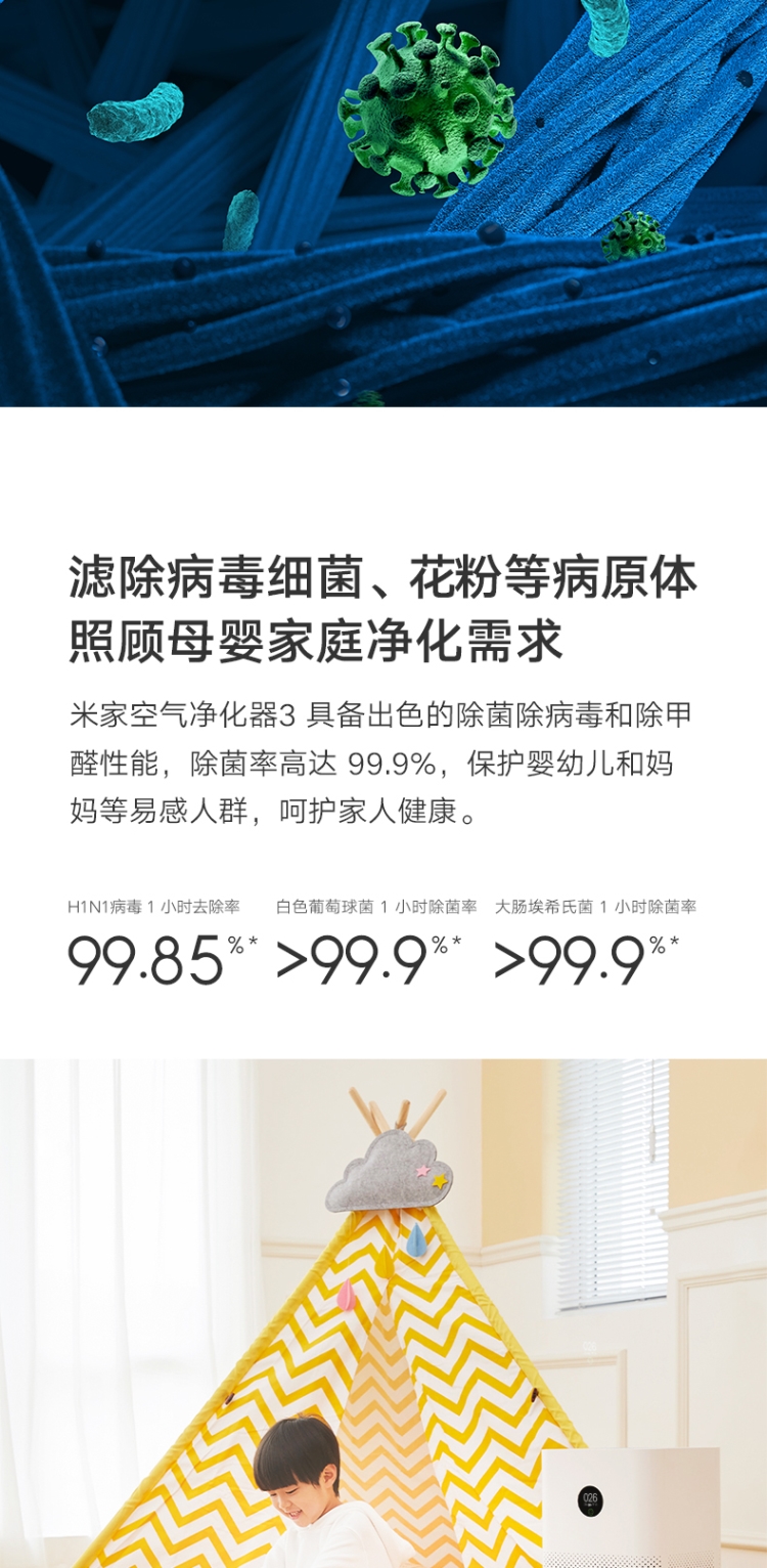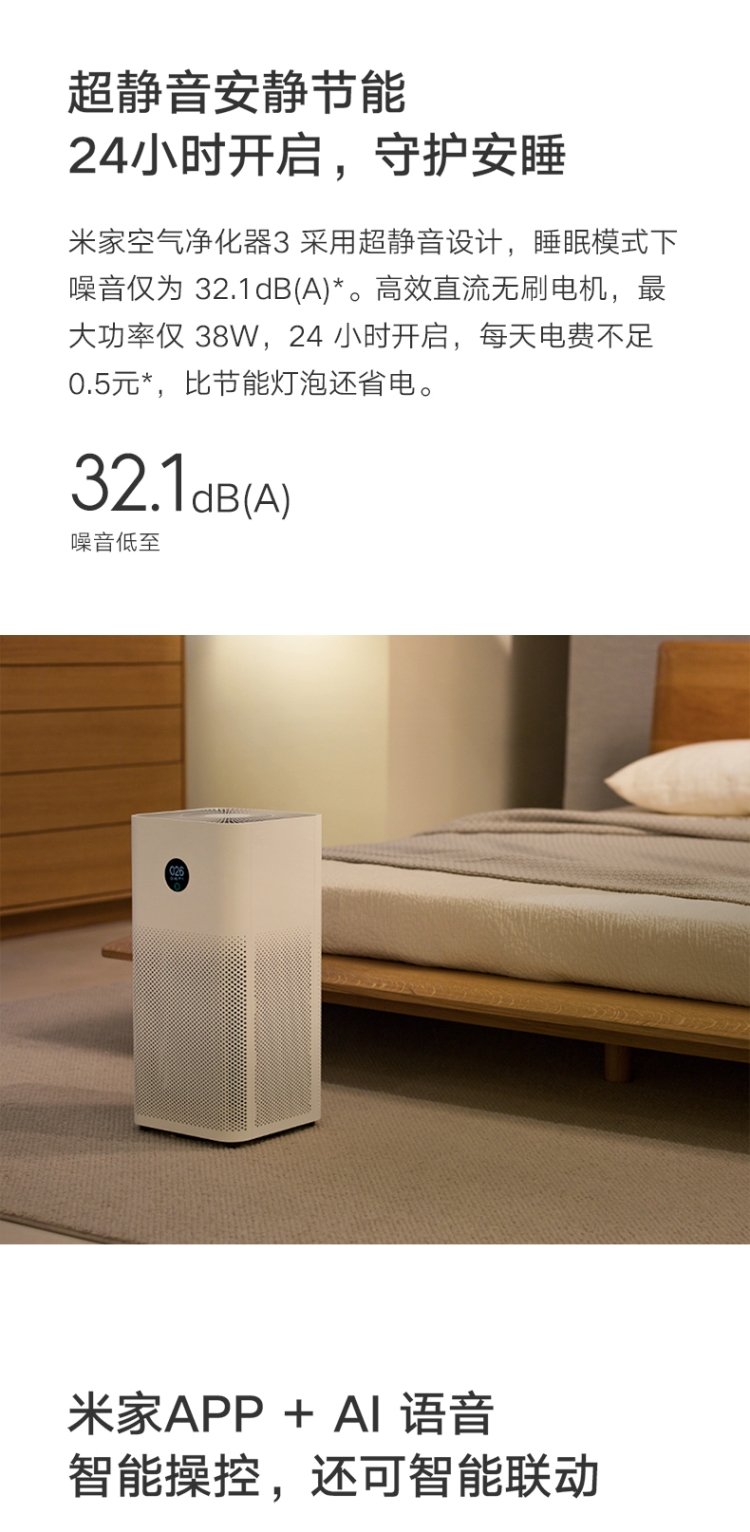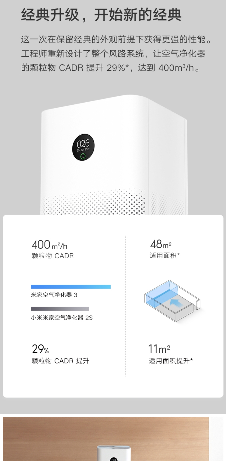 商品名稱:小米(MI)AC-M6-SC 米家空氣凈化器3 400m3/h